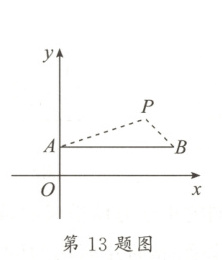 13. 如图所示,在平面直角坐标系中,点$P(3,2)$是一个光源,木杆$AB$两端的坐标分别为$A(0,1)$,$B(4,1)$,则木杆$AB$在$x$轴上的投影长为