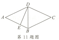 11. 如图所示, 在菱形 $ABCD$ 中, $\angle ABC = 130^{\circ}$, $DE\perp AB$ 于点 $E$, 则 $\angle BDE =$
