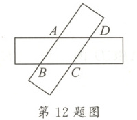 12. 所图所示, 将两张等宽的长方形纸条交叉叠放, 重叠部分是一个四边形 $ABCD$. 若 $AD = 5$ cm, $\angle ABC = 60^{\circ}$, 则四边形 $ABCD$ 的面积是