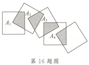 16. 如图所示, 将 $n$ 个边长都为 $1$ cm 的正方形按如图所示方式摆放, 点 $A_1$, $A_2$, $·s$, $A_n$ 分别是正方形的中心, 则 $n$ 个这样的正方形重叠部分的面积和为