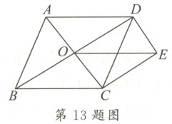 13. 如图所示, 在菱形 $ABCD$ 中, $AC$, $BD$ 相交于点 $O$, $AC = 6$, $BD = 8$. 若 $DE// AC$, $CE// BD$, 则 $OE$ 的长为