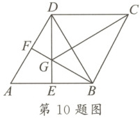 10. 如图所示, 在菱形 $ABCD$ 中, $\angle A = 60^{\circ}$, $E$, $F$ 分别是 $AB$, $AD$ 的中点, $DE$, $BF$ 相交于点 $G$, 连接 $BD$, $CG$. 下列结论正确的有(