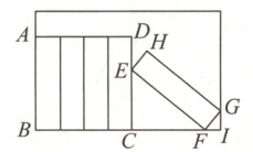 7. 有 5 本形状为长方体的书放置在方形书架中,如图所示,其中 4 本竖放,第 5 本斜放,点 G 正好在书架边框上. 每本书的厚度为 5cm,高度为 20cm,书架的宽为 40cm,则 FI 的长为