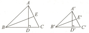 4. 如图所示,△ABC∽△A′B′C′,AD,BE分别是△ABC的高和中线,A′D′,B′E′分别是△A′B′C′的高和中线,且AD=4,A′D′=3,BE=6,则B′E′的长为