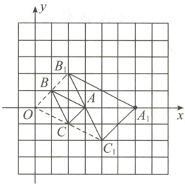 (1) 请在图中作出 $ \triangle A_1B_1C_1 $。(点 $ B $ 的对应点为点 $ B_1 $,点 $ C $ 的对应点为点 $ C_1 $)