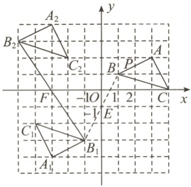 (3) 若 $ \triangle A_1B_1C_1 $ 和 $ \triangle A_2B_2C_2 $ 是位似图形,且位似中心是点 $ F $,则点 $ F $ 的坐标为