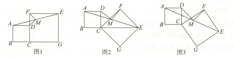 (3) 在图 2 的基础上, 将正方形 $CGEF$ 绕点 $C$ 再任意旋转一个角度到图 3 的位置, 此时 $DM$ 和 $MF$ 还相等吗? (不必说明理由)