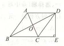21. (8 分) 如图所示, $O$ 为 $\triangle ABC$ 的边 $AC$ 的中点, $AD// BC$, 交 $BO$ 的延长线于点 $D$, 连接 $DC$, $DB$ 平分 $\angle ADC$, 作 $DE\perp BC$, 垂足为 $E$.