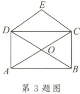 3. 如图所示,矩形 $ABCD$ 的对角线 $AC,BD$ 相交于点 $O,CE// BD,DE// AC$. 若 $AC = 4$,则四边形 $CODE$ 的周长为(
