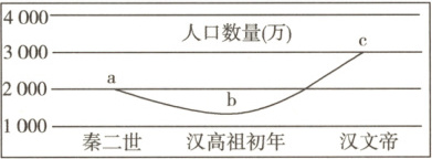 7. 下图反映了我国某一历史时期的人口数量变化,人口数量从 a 到 b 到 c 的变化,给我们的最大启示是(