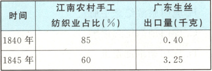 14. 下表为1840年和1845年中国部分地区经济变化简表(部分数据)。这一变化表明中国(
