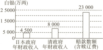 7. 如图为甲午中日战争后中国赔款数额与中日政府年财政收入对比示意图。据此可知(