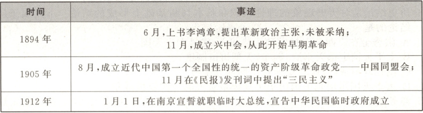 (2)根据材料二并结合所学知识,概括孙中山革命行为的转变。(3分)