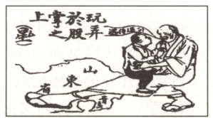 如图,漫画《玩弄于股掌之上》由马星驰创作于1919年2月(1919年1月巴黎和会召开)。