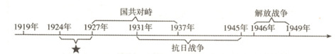 11.C【解析】根据题干“1924年—1927年”和所学知识可知,1924年第一次国共合作正式开始,国共两党共同掀起了国民革命,1927年国民党右派叛变革命,国民革命运动失败,可以得出,图中“★”处对应的内容是国民革命,C项正确;土地革命和国共十年对峙时期是从1927年到1937年,与题意不符,排除A项;旧民主主义革命是从1840年到1919年,与题意不符,排除B项;新民主主义革命是从1919年到1949年,与题意不符,排除D项。故选C项。