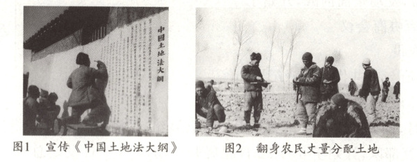 阅读材料及图片并结合所学知识,围绕“解放区的土地改革”为主题,自拟题目,写一篇小论文。(要求:主题明确,史论结合,条理清晰,不少于120字)