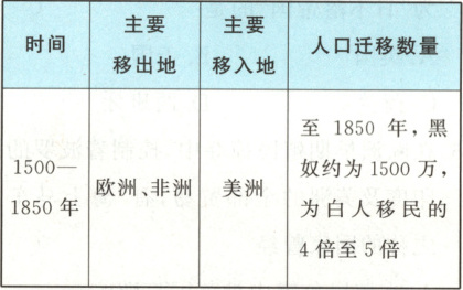11. 下表中,“黑奴”由非洲移入美洲的主要原因是(
