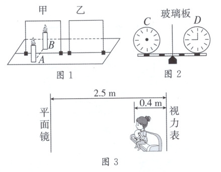 (5)小明看到自己的手表与同桌的相同,于是突发奇想将两块手表替代蜡烛,正立于玻璃板两侧,如图2所示,此时D手表指针指在9点整,那么C手表的指针应调至