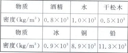 3. 表中列出了部分物质在常温、常压下的密度。则下列说法正确的是(