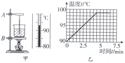 (选填“A”或“B”)铁圈。(3)实验中某时刻温度计的示数如图甲所示,此时水温是