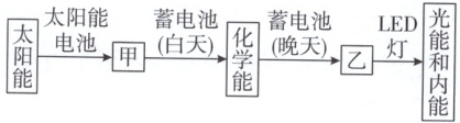 4. 某路灯照明系统主要由太阳能电池板、蓄电池、控制器、LED灯具、灯杆及其他配件组成。太阳能电池白天对蓄电池充电,晚上该蓄电池再对LED灯供电,这些功能均由控制器调节管理,其能量转化过程如图所示。下列说法正确的是(