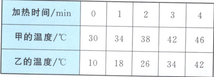 (选填“升高的温度”或“加热时间”)来比较甲、乙两种液体吸收热量的多少。(2)实验数据如下表所示,