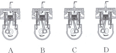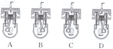 1. 某汽油机的四个冲程如图所示,在该汽油机的一个工作循环中,压缩冲程结束后,下一个冲程是(
