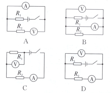 2. 下列电路中电压表测量 $ R_{2} $ 两端电压,且电路连接正确的是(