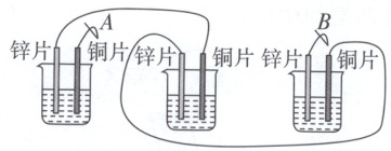 5. 如图所示,在烧杯内的盐水中插入一根铜片和一根锌片,就做成了一个盐水电池,将多节这样的盐水电池串联,为判别串联盐水电池组的正、负极,在盐水电池的两极 $ A、B $ 间接入下列元件,能达到目的的是(
