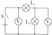 )A.两灯串联,两电压表示数相同
