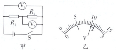 6. 如图甲所示电路,当闭合开关S后,两个电压表指针偏转均为如图乙所示,则电源电压和R₁两端的电压分别为(