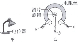 6.(情境化)如图甲是利用电位器调节亮度的台灯。电位器的内部结构如图乙所示,$ a $、$ b $、$ c $ 是三个接线柱,当旋钮带着滑片顺时针旋转时,灯逐渐变亮,则电位器连接的是(