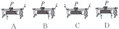 4. 如图所示是滑动变阻器的四种接线方法。当滑片 $ P $ 向右移动时,接入电路中的电阻变大的是(