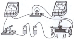 5. 如图所示电路,闭合开关后将滑片移至图示位置时,灯泡恰能正常发光,若将滑动变阻器的滑片向B端移动时,则(