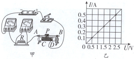 。(3) 排除故障后,实验中测得五组数据,并绘制出定值电阻R的I-U图像如图乙所示,由此可得出结论: