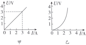 )A.图甲是定值电阻的$U - I$图像,图乙是小灯泡的$U - I$图像