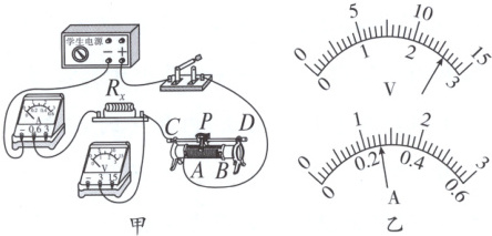 $(3)$排除故障后,调节滑动变阻器连入电路中的阻值,记录每次对应的电流值和电压值,其中一次电流表和电压表的指针如图乙所示,据此算出电阻$R_x$为