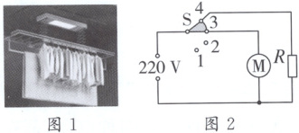 (3)如图 2 所示,是该晾衣机的部分工作电路图,R 是发热电阻。当开关 S 接通 3、4 触点,晾衣机开启