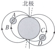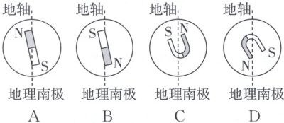 4.(情境化)“张衡一号”电磁监测试验卫星获取了全球地磁场和电离层原位数据,构建了全球地磁场参考模型。假想地磁场是由地球内部一块大磁体产生的,则如图所示的四个示意图中,能合理描述这块大磁体的是(