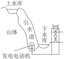 6. (情境化)抽水蓄能电站被称为“超级充电宝”,用电低谷时段利用电网多余电能抽水至上水库,用电高峰时段再放水至下水库发电,如图所示。关于抽水蓄能电站,下列说法正确的是(