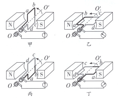 (选填“有”或“无”)感应电流。当线圈转到乙、丁两图的位置时,由于ab边以及cd边切割磁感线的方向相反