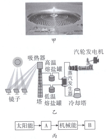 太阳光,聚集到吸热器上进行加热。(2)请结合图乙完成图丙中太阳能光热发电的能量转化流程图。A