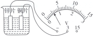 3. (跨学科)在烧杯中加入盐水,然后将连在电压表上的铜片和锌片浸入盐水中,这样就制成一个电池,其现象如图所示。下列说法不正确的是(
