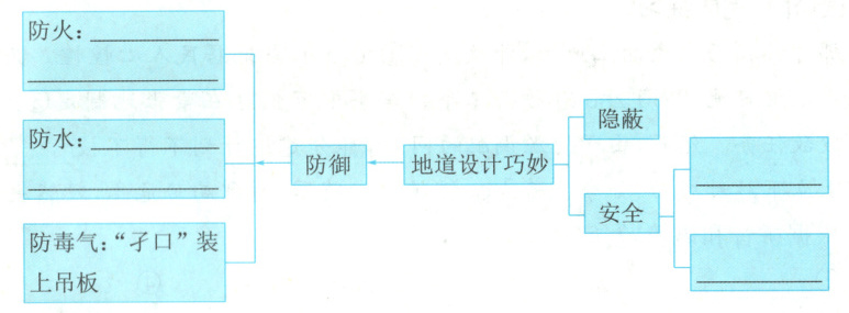1.ABC 2.(防火)洞口备有土和沙 (防水)地道跟枯井暗沟相连 (安全)有“警戒洞” 有“迷惑洞”