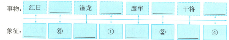 六、作者用一系列的事物描绘了少年中国的光辉前景,请你根据课文内容,把思维导图补充完整。(象征意义填序号)