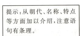 (3)圆明园中珍藏的历史文物数不胜数,你对历史文物了解多少呢?请写出你熟悉的一个文物,并加以介绍。