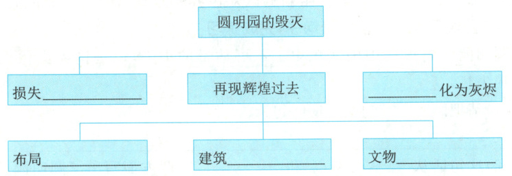 1. 根据课文内容,完成思维导图,重点关注圆明园辉煌的过去。