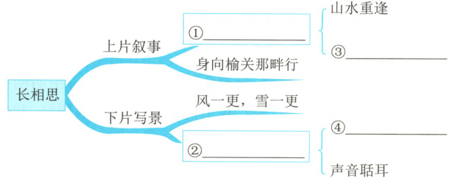 4. 小欧为《长相思》一词画了一幅思维导图,请你帮她补全。