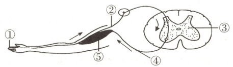 10. 如图为手指被针刺后的缩手反射示意图。下列有关叙述错误的是(