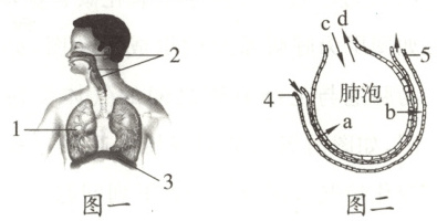 (2)图二所示的外界气体按照 c 方向进入肺泡时,图一中[3]膈肌应处于